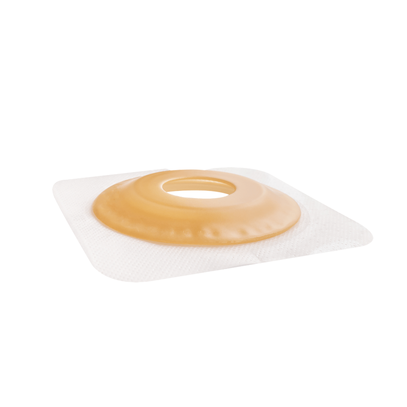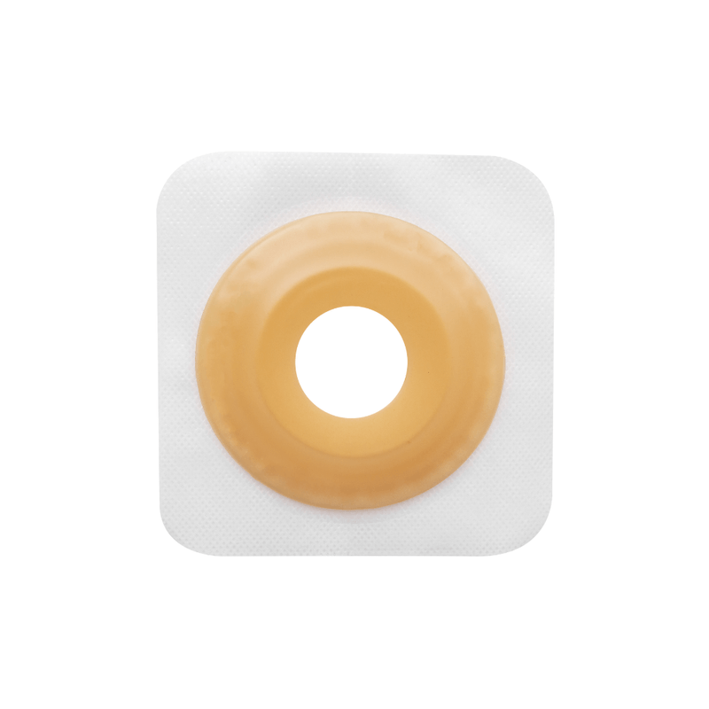 Barrera cutánea convexa precortada, del sistema para ostomía Natura, protege la piel expuesta a las fugas del estoma, mejorando ajuste y seguridad del paciente sin la necesidad de usar tijeras. Ingredientes: Trilaminado Durahesive™,carboximetilcelulosa sódica, pectina y gelatina en una matriz de polímeros elastoméricos; con soporte adhesivo hipoalergénico.